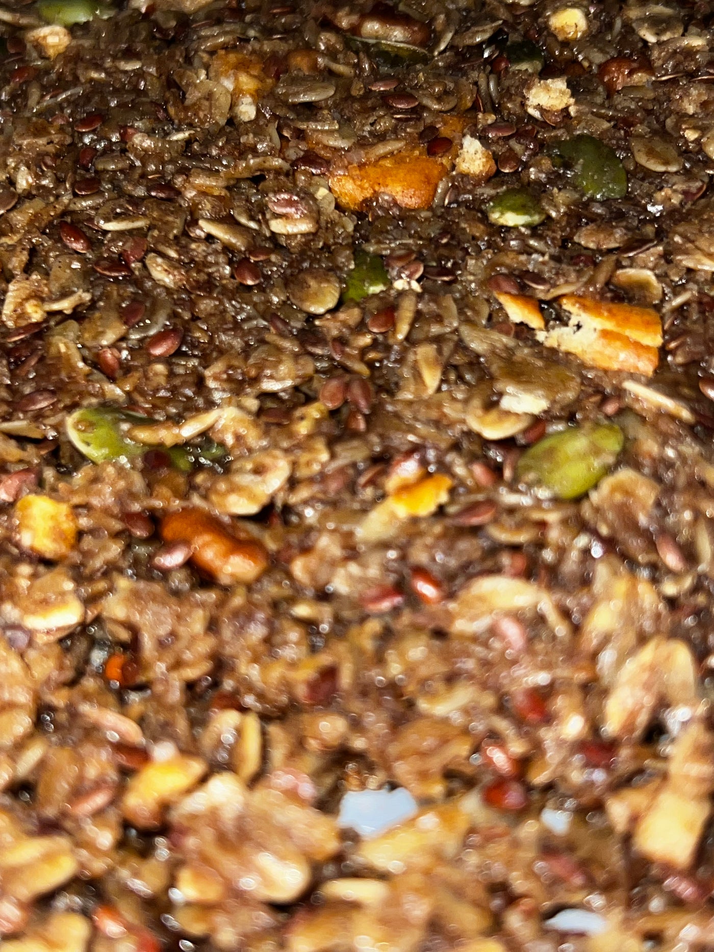 Nutritious oats, raw sugar, pumpkin & flax seed, fresh peaches, nuts, spices, crust crumbles perfectly blended with love, into a decadent, vegan snack.